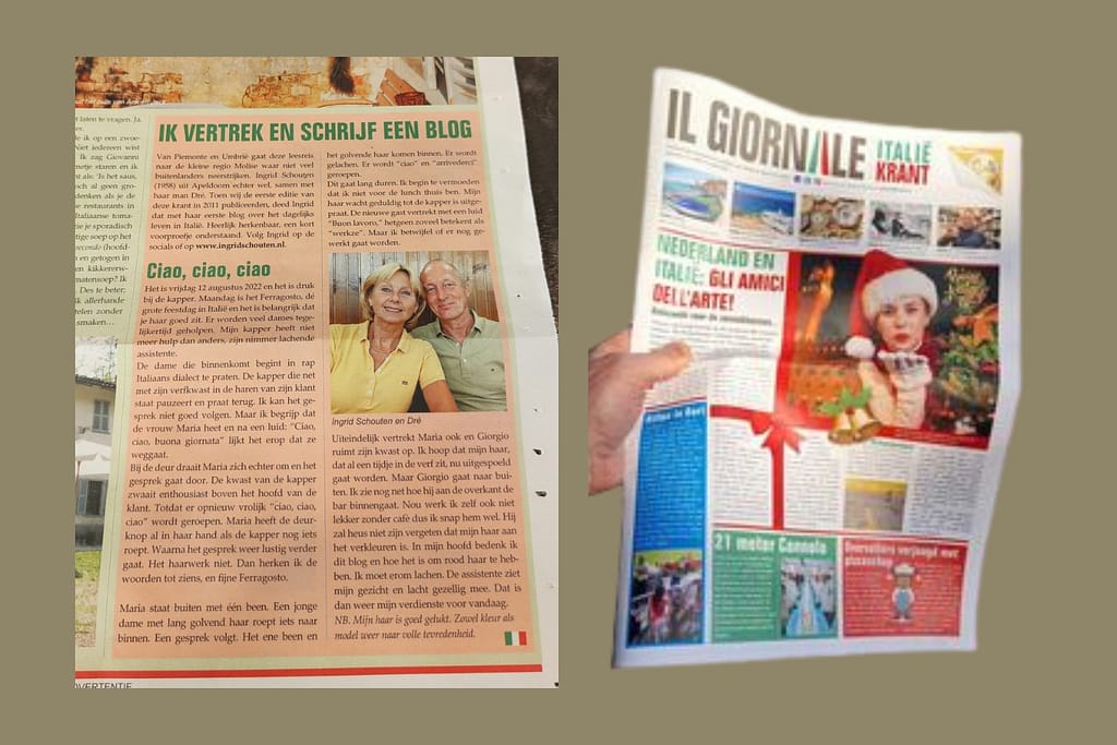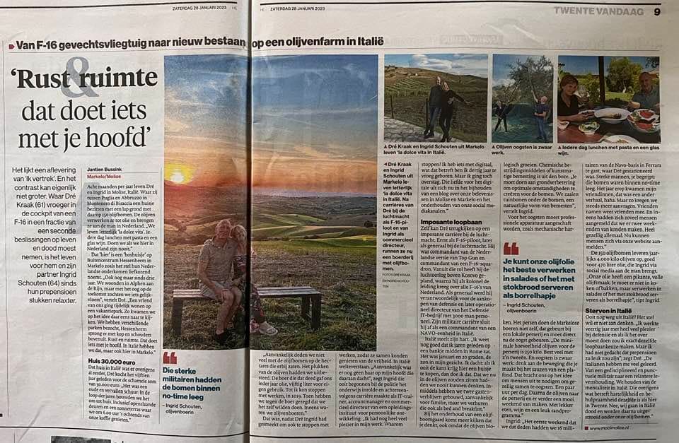 In de zaterdagkrant van 27 januari 2023 verscheen een uitgebreid artikel van jantien Bussink. Zij vertelde over ons leven in Italie en Markelo en “hoe het zo kwam.”