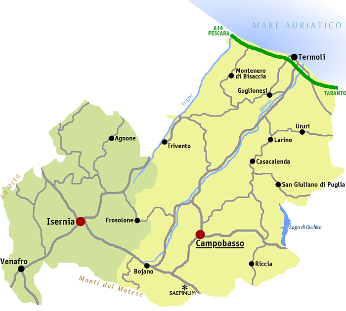 Molise is een regio in Zuid-Centraal Italië, de op een na kleinste regio van het land. Tot 1963 maakte Molise samen met Abruzzen deel uit van de regio “Abruzzen en Molise”, maar daarna werd het een afzonderlijke entiteit. In het noordwesten grenst de regio aan Abruzzen, in het westen aan Latium, in het zuiden aan Campanië, in het zuidoosten aan Apulië en in het noordoosten aan de Adriatische Zee.