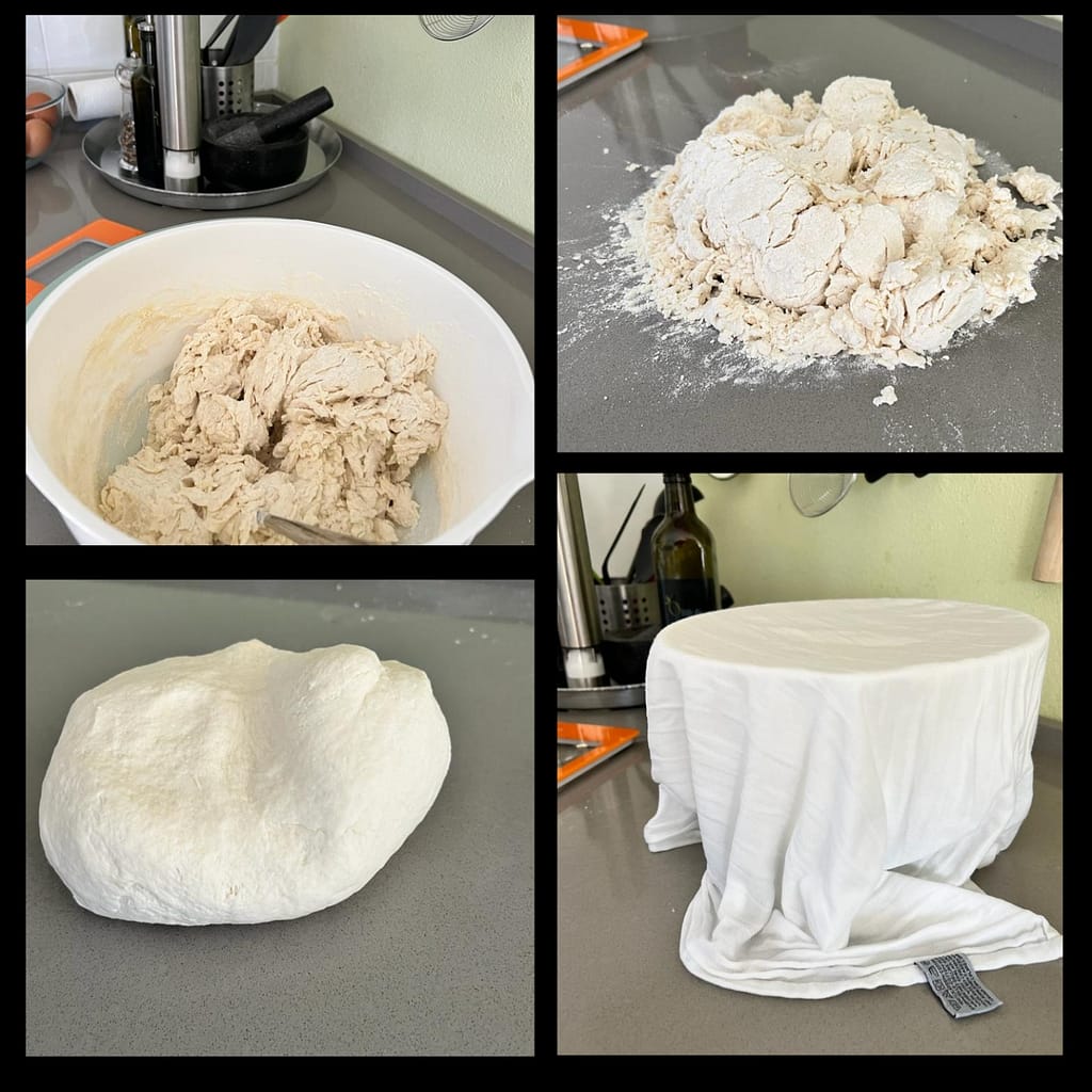 - Maak een bol van het deeg en laat minimaal 1 uur rijzen onder een vochtige doek.