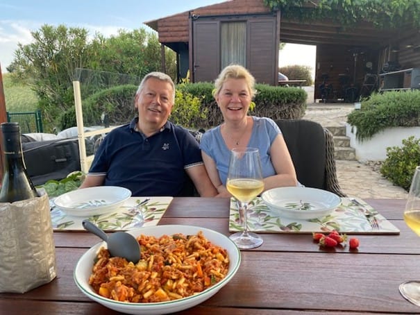 We kregen een welkomstdrankje en raakten in gesprek. Ingrid en Dré zijn open warme mensen en houden van hun stukje paradijs in Molise. En ja zij wonen daar ook echt prachtig! Heerlijk geslapen in een prima huisje, mooi uitzicht over de glooiende heuvels en olijfbomen en de verstilling van de omgeving kwam bij mij binnen. En ja dat inmiddels beroemde bankje hebben we natuurlijk ook vastgelegd. Elke morgen uitstekend ontbijt en zo starten we de dagen hier bij Ingrid en Dré.